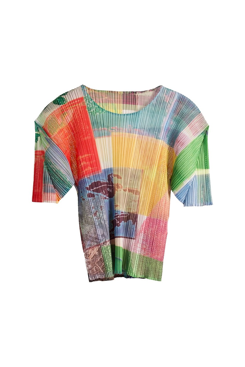 MULTICOLOR ABSTRACT PRINT SHORTSLEEVE TOP