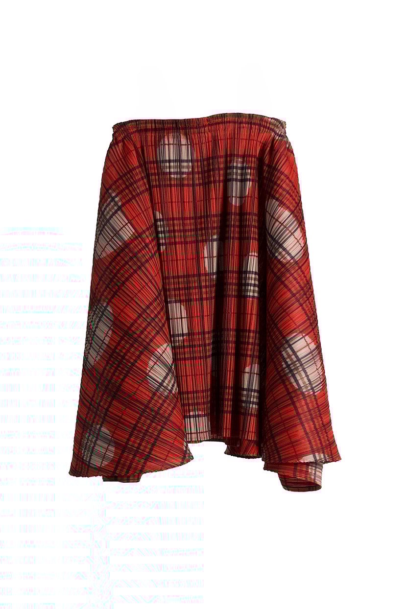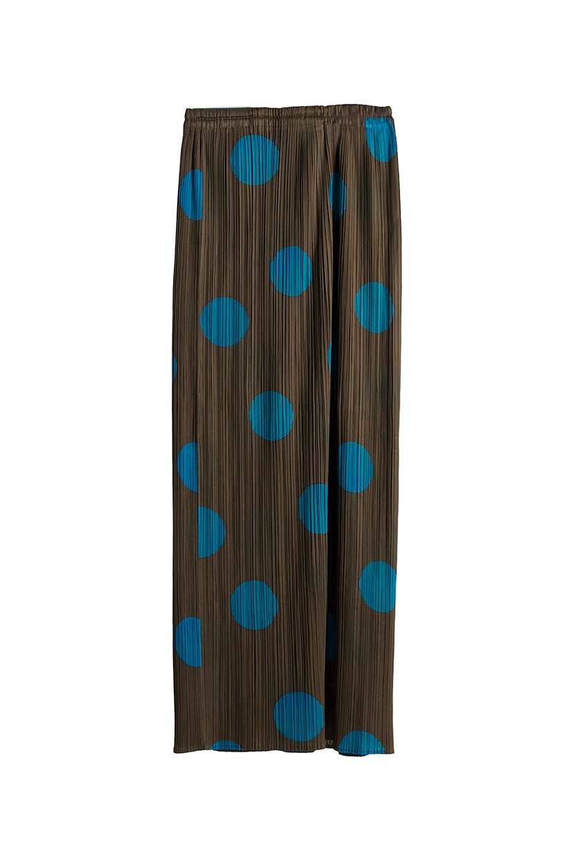 OLIVE GREEN-BLUE POLKA MIDI SKIRT