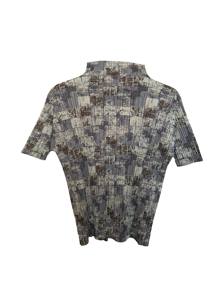 GREY ASYMMETRIC PRINT TURTLE NECK SHORTSLEEVE TOP