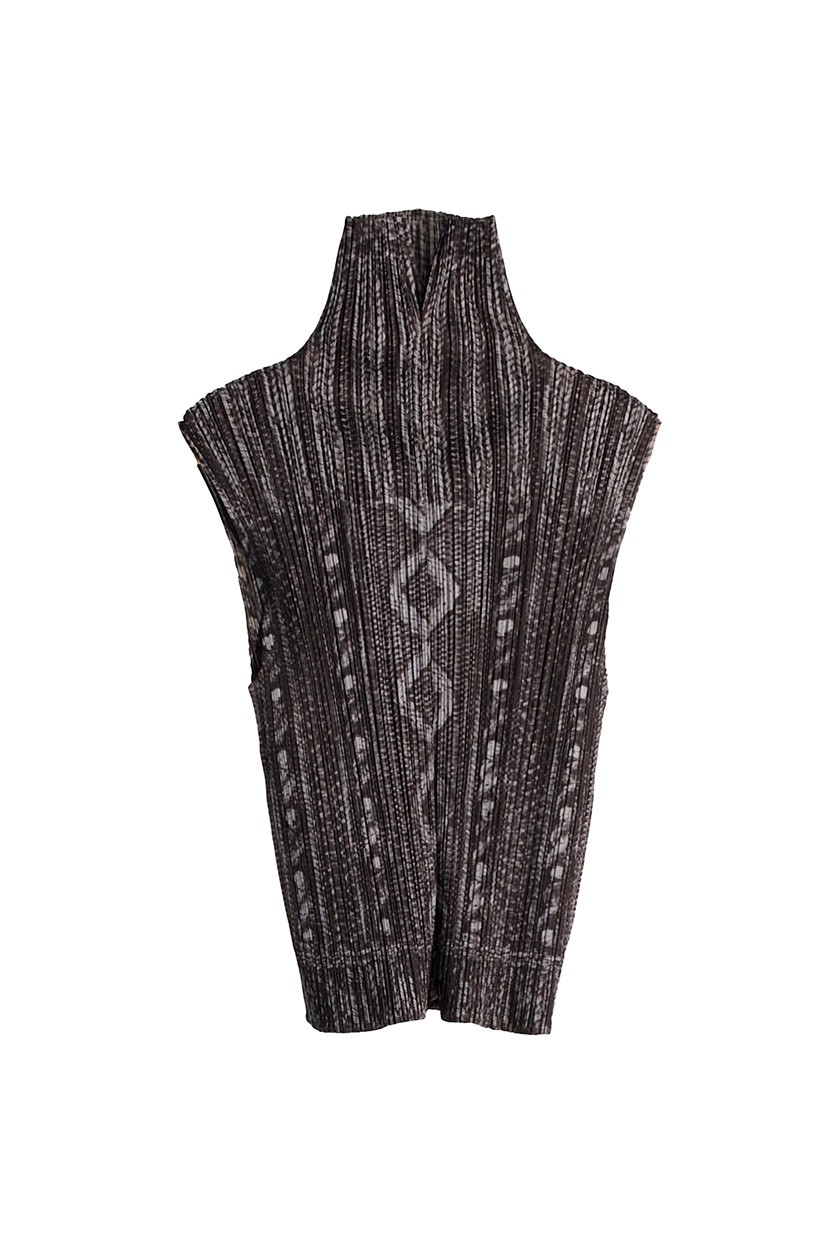SWEATER PRINT SLEEVELESS TURTLE NECK TOP