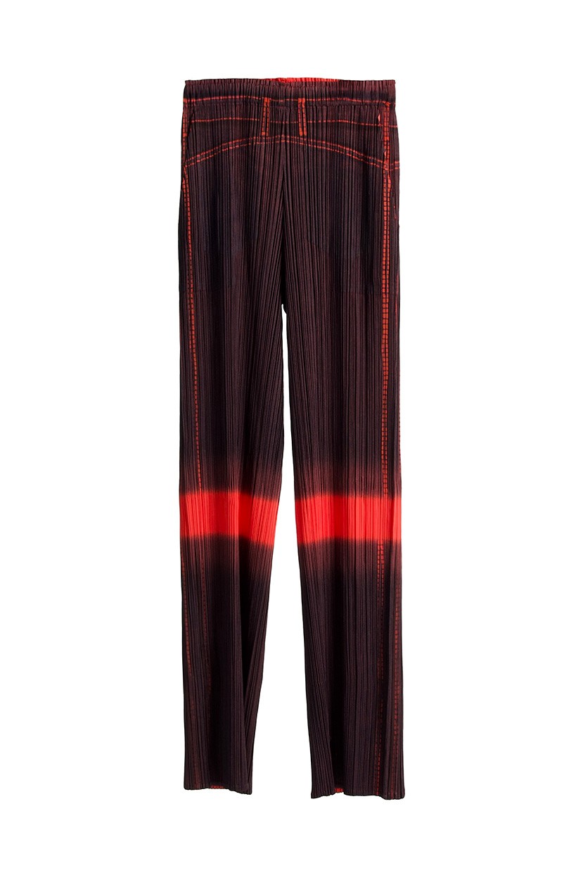 RED WASHED DENIM PRINT STRAIGHT LEG PANTS