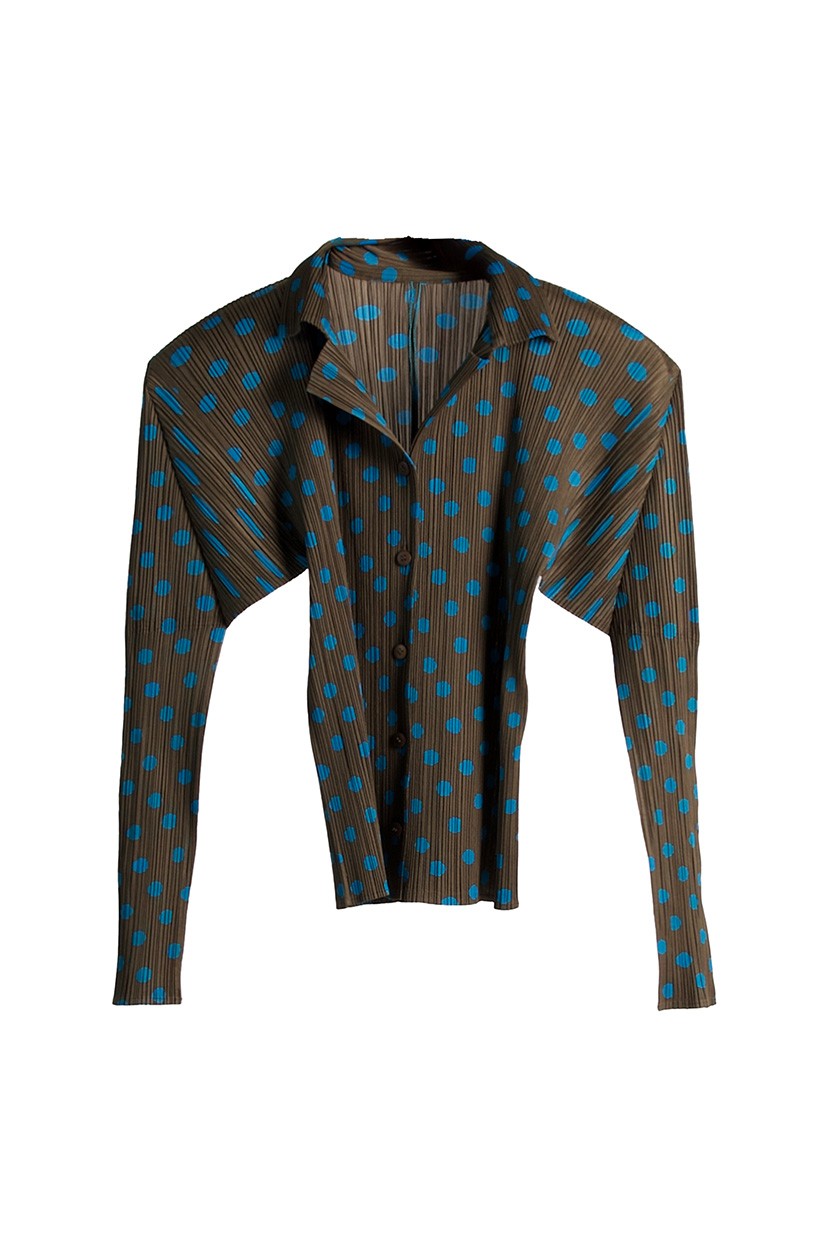 OLIVE GREEN-BLUE POLKA DOT BUTTON FRONT LONGSLEEVE SHIRT