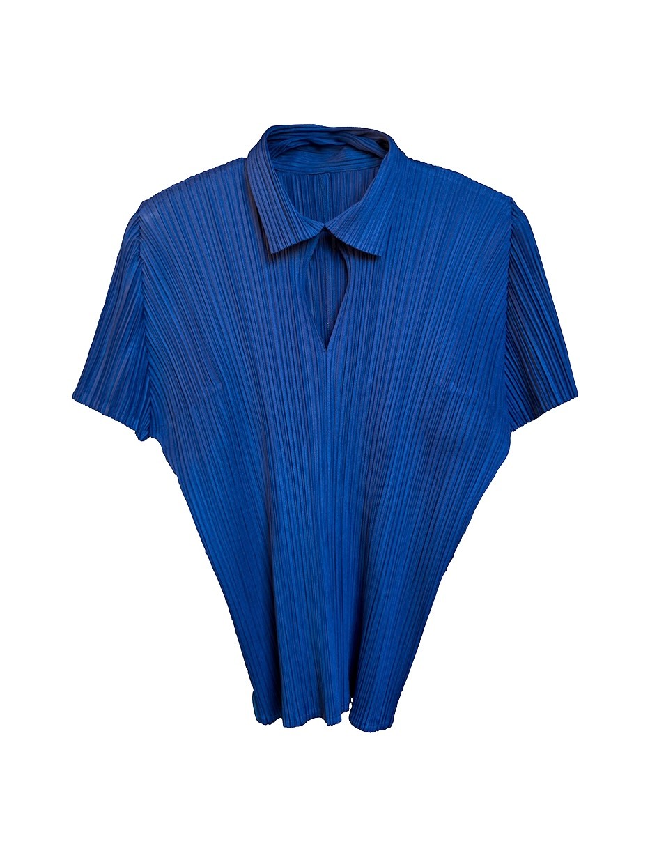 COBALT BLUE POLO COLLAR SHORT SLEEVE TOP