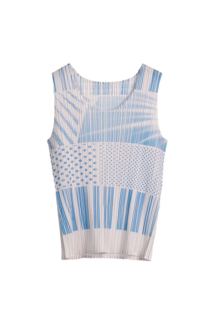 BLUE-WHITE PATCHWORK PRINT TANK TOP