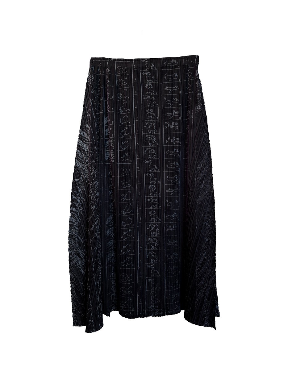 BLACK ANIMATION GRAPHIC PRINT FLARED MIDI SKIRT